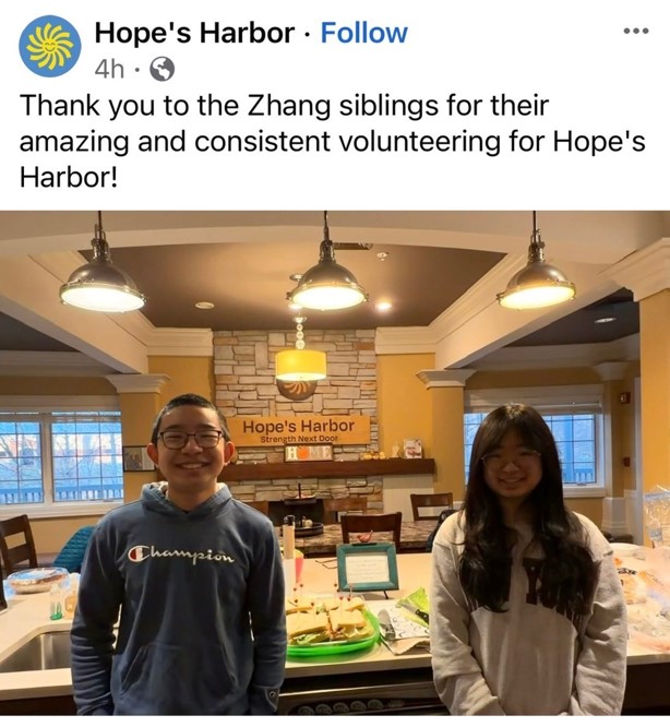 During college breaks, Sophia continued her efforts at Hope's Harbor by preparing wonderful meals to those with loved ones hospitalized, offering support during an especially difficult time. Through these meals, she hopes to provide comfort, care, and one small reminder that they are not alone. Way to go!